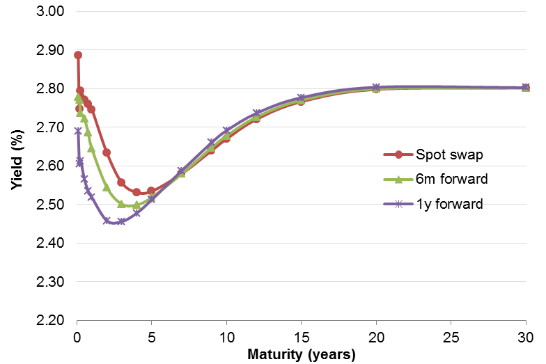 Exhibit 1: Spot and forward swap curves are pricing in lower rates