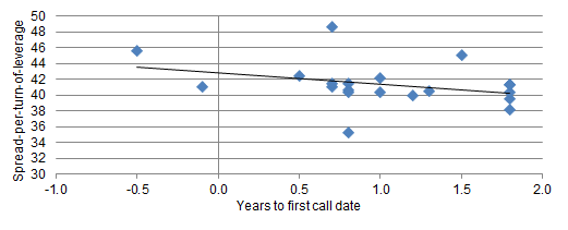 Exhibit 1: A wide range of nominal spreads, a narrow range of spread-per-turn-of-leverage
