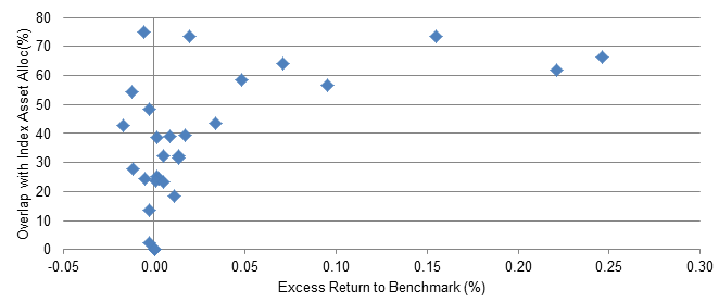 Exhibit 1: Alpha improved as funds moved away from benchmark allocation