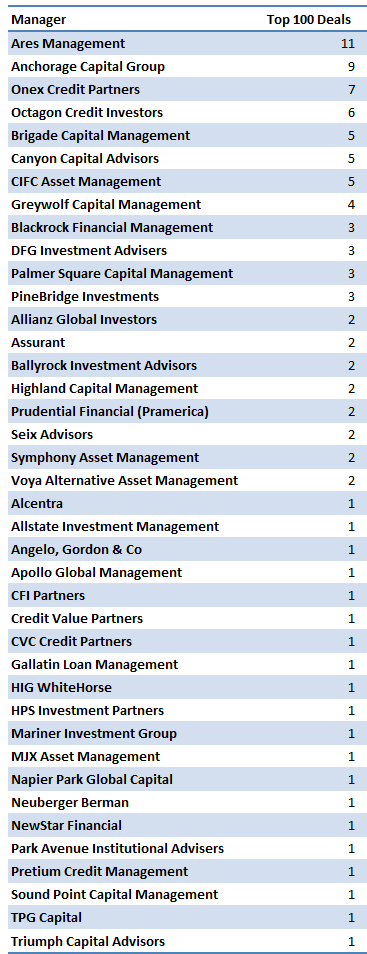 Exhibit 2: Managers with CLO portfolios in the Top 100 for April