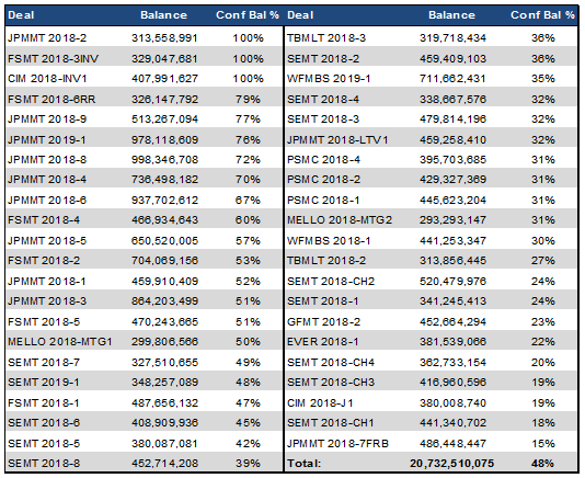 Exhibit 1: The population of conforming-balance loans in recent private deals