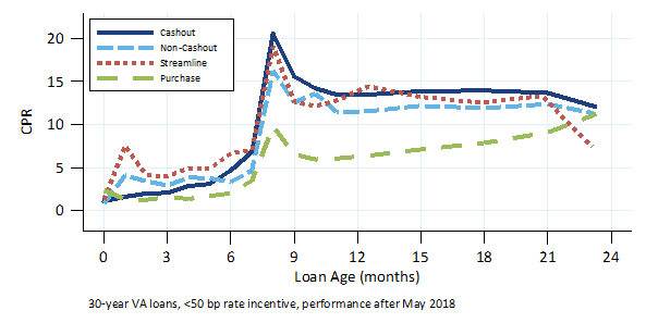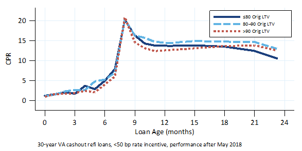 None of the seasoning ramps suggest that high LTV cash-out refinances, or cash-out refinances in general, have been prepaying unusually relative to other VA loans.