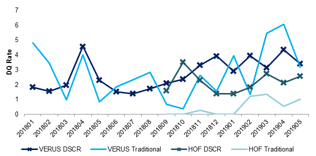 Exhibit 3: Shelf level delinquency rates – DSCR and traditional investor loans