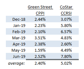 More details on Green Street’s methodology can be found in their press releases, one of which is here. Although its not explicitly stated, since Green Street focuses on high-quality REIT-owned properties, it seems likely that lower priced properties in the $5 million or below price tiers are sparsely represented, if at all, in the Green Street indices.