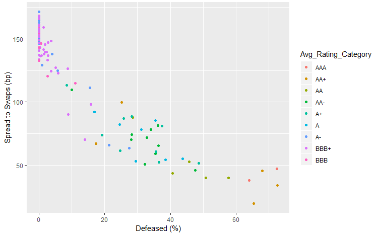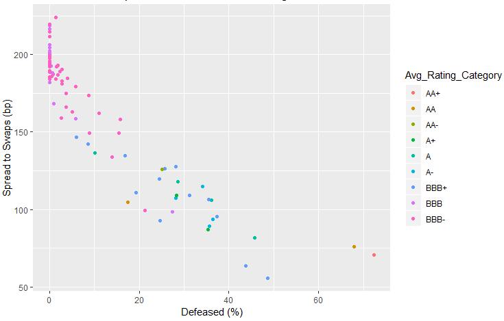 There is also a somewhat wide diversity of ratings across various defeasance buckets. Although much of the spread tightening occurs as defeasance levels and other credit metrics are reported, an upgrade can attract investors who are sensitive to ratings categories due to regulatory or other eligibility criteria.