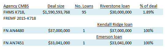 The Kendall Ridge and Emerson loans in the Fannie Mae DUS pools were prepaid without prepayment penalties attached, so that pools which had been trading at a premium were suddenly paid back at par without additional compensation to the investors.