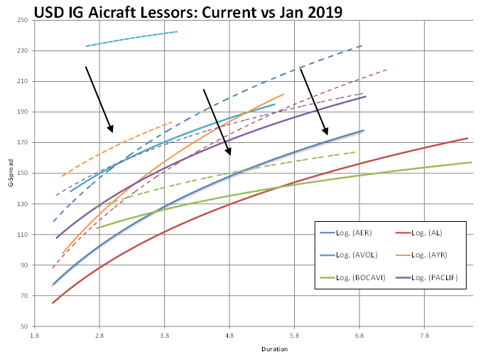 Exhibit  2: IG Aircraft Lessors – current spreads vs beginning of the year