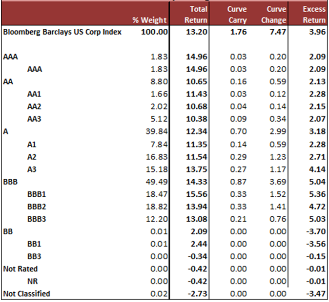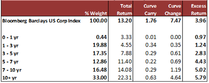 IG Corporate Bond Index: 2019 return attribution summary year-to-date