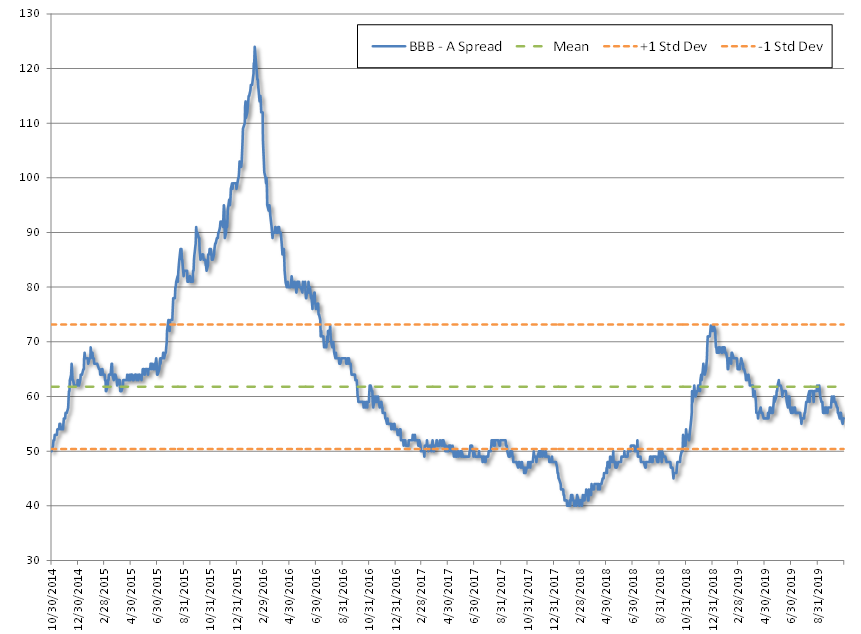 Exhibit 2: BBB vs A Corp spreads (5-year history)