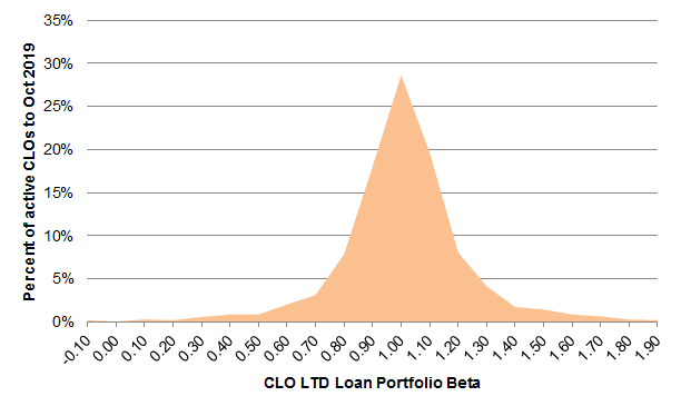 Exhibit 2: The beta of current active CLO loan portfolios varies widely around 0.97