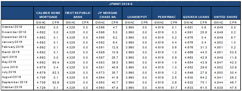 Speeds across the vast majority of late 2018 and early 2019 vintage prime jumbo trusts have run above 40 CPR with certain deals printing 1-month speeds greater than 70 CPR. Originators with lower average WACs have not contributed to those fast speeds.