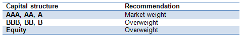 Portfolio performance has remained strong in 2019 despite weakness in the leveraged loan market. The manager’s tendency to hold an intentionally diversified portfolio of higher quality loans has likely insulated it from market weakness. The manager also tends to hold its own CLO equity, giving it strong incentives to take only prudent risk. Spreads on 40|86 senior debt warrant a market weighting while strong asset performance and retention of equity make mezzanine debt and equity worth overweighting. Amherst Pierpont’s current recommendations (Exhibit 2):