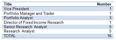 - The investment committee includes the CLO portfolio managers and the director of research. Research analysts present to the investment committee, the leveraged loan group and other research analysts and colleagues.
