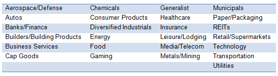 The 40|86 team is constructive about leveraged loan performance in services, manufacturing, healthcare, food and tobacco and the forest products and containers sectors. It carries notable overweight positions in those areas. In information technology, retail, energy, gaming and leisure and media and telecommunications, the team is cautious and underweight.