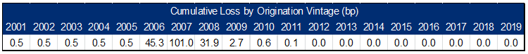 Agency loans in recent years have found their way into private MBS often for the better pricing on certain specified stories. But since the Provident deal is backed by mostly generic agency-eligible loans, it may be less about best execution and more about the issuer taking a view on their own underwriting and credit quality by retaining certain credit sensitive parts of the deal. To date, the issuer has exhibited very strong credit performance with even pre-crisis vintages exhibiting just 1% in aggregate credit losses, substantially lower than the broader cohort (Exhibit 4). It seems plausible that originators with similar views on their credit and underwriting could follow suit, with the caveat that they would need to be adequately capitalized to hold retained interests.