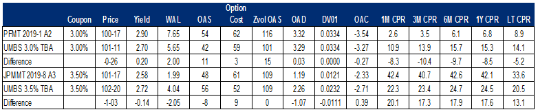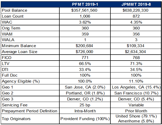 Exhibit 2: A side by side comparison: PFMT 2019-1 vs JPMMT 2019-8