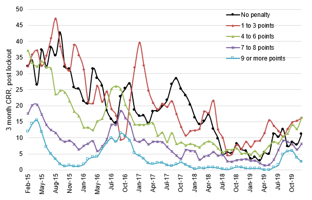 Note: CRR is calculated as voluntary prepayments as a percentage of outstanding deal balance excluding loans in lockout or that are defeasible. This matches Intex’s CPR when forecasting. Prepay speeds updated through November 2019. Source: Ginnie Mae, Intex, Amherst Pierpont Securities.