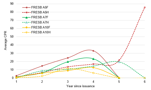 Exhibit 3: Average prepayment speeds across FRESB tranches for 2014-2019 vintages