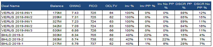 Scanning the universe of non-QM trusts to try to find concentrated exposures to these types of loans shows that nearly 90% of the collateral backing certain Invictus trusts are DSCR loans with prepayment penalties attached to them. In addition to the Invictus VERUS trusts, Oaktree’s Bunker Hill (BHLD) deals have meaningful concentrations of investor loans with prepayment penalties. (Exhibit 4) Ultimately, investors in these trusts are short call options which allow the issuers to collapse the trust at par at either a specified date or when the collateral balance hits a certain threshold. Collateral selection can by and large do little to mitigate that call risk. That said, investors can try to insulate themselves from elevated prepayment speeds prior to issuer calls by adding convexity through certain types of investor loans.