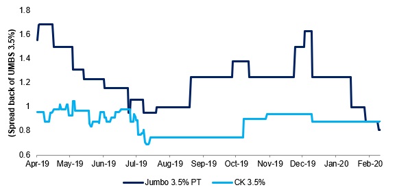 Exhibit 1: Jumbo 3.5% pass-throughs are trading in-line with their spec pool counterparts