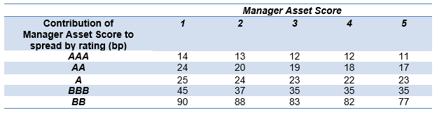 Exhibit 6: Spreads tighten as Manager Asset Score rises