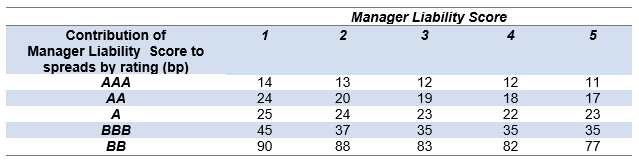 Exhibit 7: Spreads widen as Manager Liability Score rises