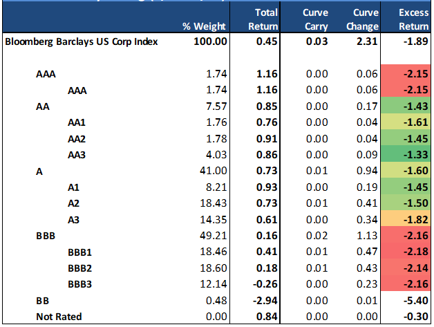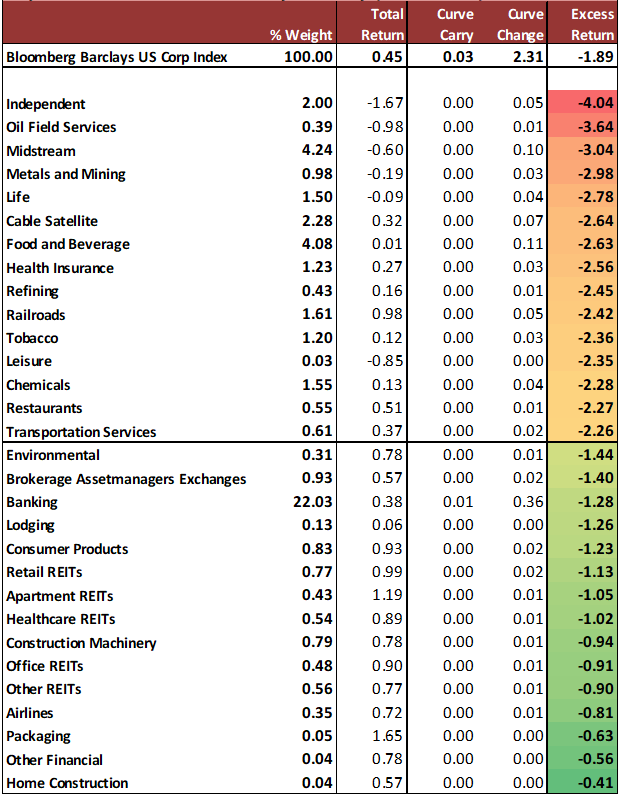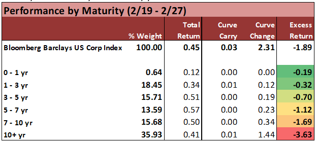 Exhibit 4: Long-dated corporate spreads moved the most as a direct offset to the rally in 10 and 30-yr US Treasury yields.