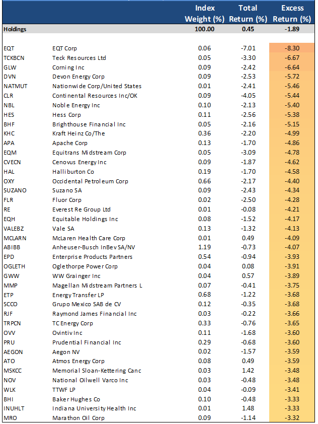 Exhibit 5. Bottom 40 excess returns by issuer (2/19 – 2/27)