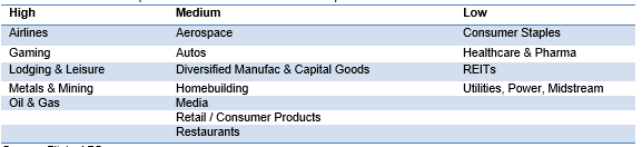 Exhibit 1: Relative impact of coronavirus on US corporate sectors