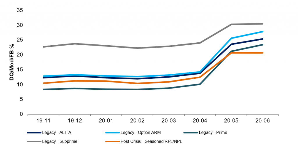 Additionally, option ARM collateral by and large has outsized exposure to judicial foreclosure states like New York, New Jersey and Florida relative to other cohorts. Given the long liquidation lags that already exist in judicial foreclosure states, specifically New York and New Jersey, which will likely only further extend due to Covid-19 related foreclosure moratoriums and court closures, it seems unlikely that these delinquencies will materialize into losses that would cause write-downs and curtail the IO any time in the near future.
