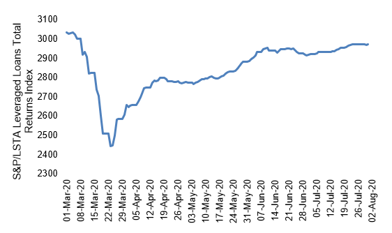 Loan returns rose steadily between May and July (Exhibit 1). The index has now reached about 98% of its pre-coronavirus level. After accounting for the various reporting dates of managers, the S&P/LSTA Index gained 8.2% between May and July. Managers held portfolios with an average beta of 1.03, which meant the average manager should have gained 8.5%. With the actual average performance at 8.8%, the average manager outperformed the index by 0.3%.
