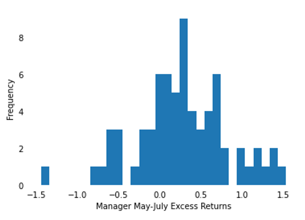 Exhibit 2: Nearly 70% of the managers outperformed the index between May and July