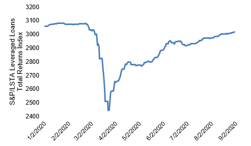 Loan returns rose steadily between June and August (Exhibit 1). The index has now reached about its pre-coronavirus level. After accounting for the various reporting dates of managers, the S&P/LSTA Index gained 6.3% between June and August. Managers held portfolios with an average beta of 1.04, which meant the average manager should have gained 6.53%. With the actual average performance at 6.81%, the average manager outperformed the index by 0.28%.