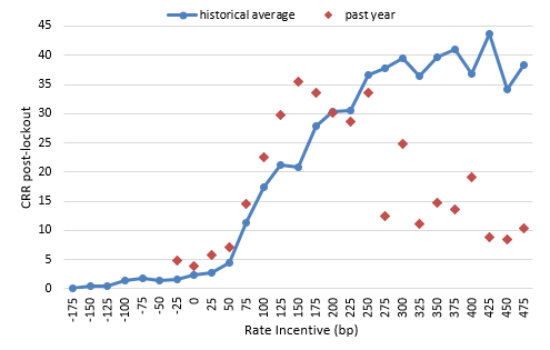Exhibit 4: Historical prepayment speeds (CRR) by refi incentive