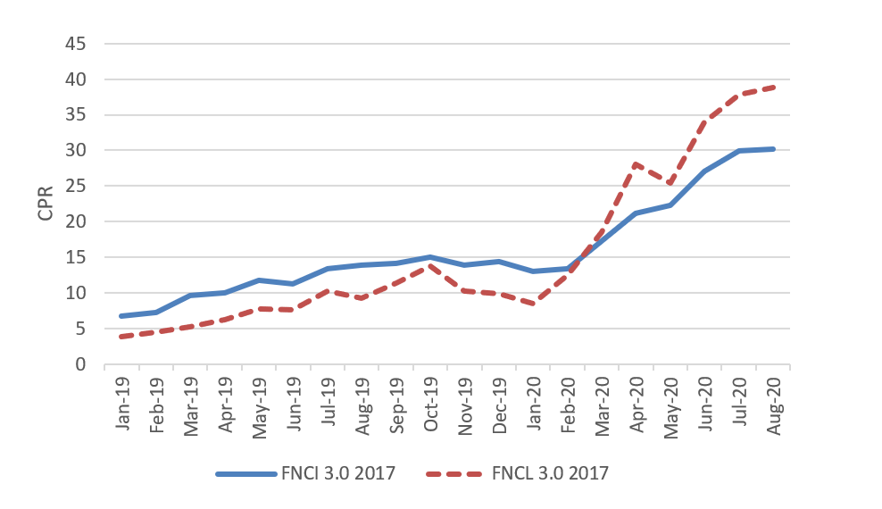 Tight OAS with wide nominal spreads partly reflects greater negative convexity in 30-year MBS. The longer paper tends to show more cash flow volatility (Exhibit 2). Primary mortgage rates on 15-year loans often come in below the rates on 30-year, helping lift speeds on 15-year MBS in markets with limited refinancing. But 15-year pass-throughs historically trail 30-year paper in refinancing, even with similar refinancing incentives. The greater negative convexity in 30-year paper contributes to greater option cost.