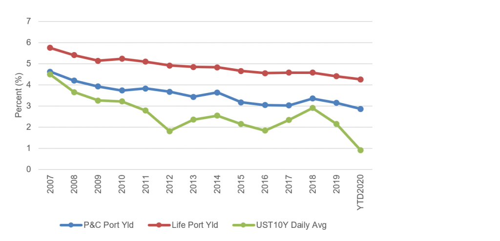 Exhibit 1: Insurance portfolio yields have dropped for more than a decade