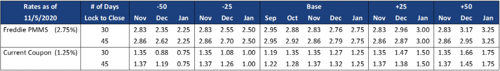 Prepayment speeds should drop roughly 5% in November, which is typically a very slow month. November has two fewer business days due to Thanksgiving and Veteran’s Day, and there are some indications that interest in buying a home has started to slow. Lagged mortgage rates are slightly lower, however, and the refinance index has recently moved slightly higher. An increase in refinancing should offset some of the calendar slowdown.