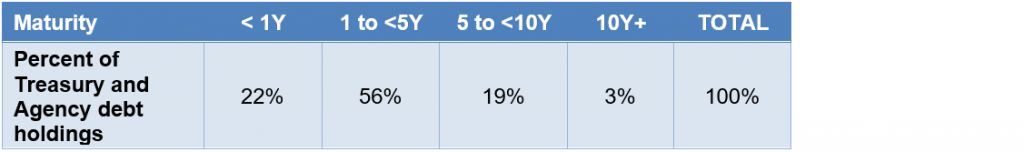 Note: shows maturity allocation of US bank Treasury holdings 3Q2020. Source: US Treasury, Amherst Pierpont Securities