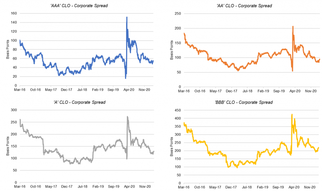 The original version of this article mistakenly indicated notably wide spreads on ‘BB’ CLO debt. Corrected to ‘BBB’ CLO debt on 3/29/2021 at 8:23a ET.
