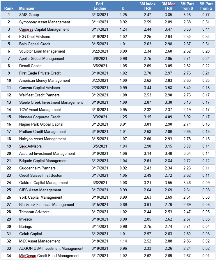 Exhibit 5: Alpha leaders in CLO portfolio performance January – March 2021