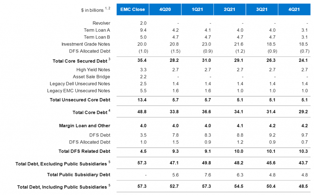 (5) VMW and its subsidiaries are considered unrestricted subsidiaries for purposes of existing debt at DELL.