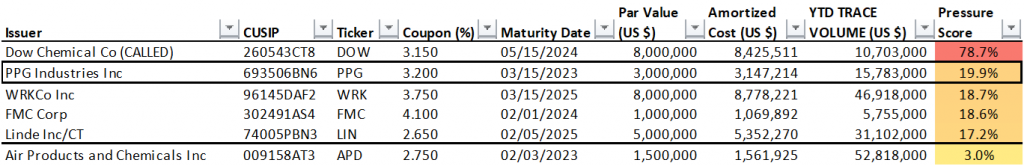 Exhibit 2. Basic Industry: sell PPG 3.2% 3/23, buy APD 2.75% 2/23