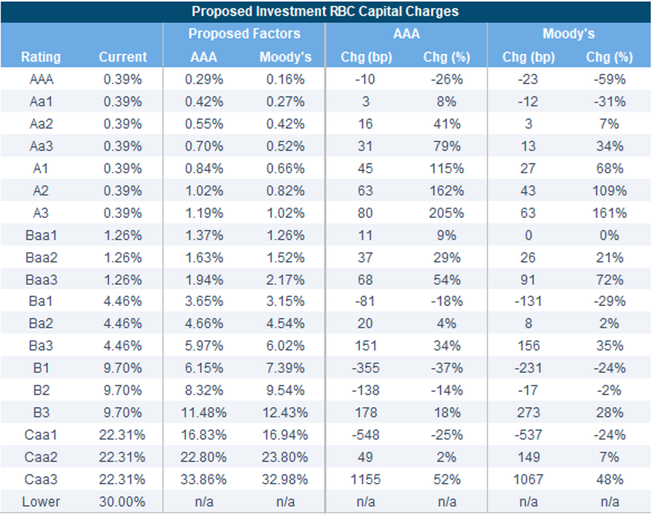 The National Association of Insurance Commissioners (NAIC) is currently weighing two proposals on how to change its existing risk-based capital charges for fixed income securities. Insurers should anticipate these changes and start to think about maximizing return to capital at each ratings level. Other investors in corporate debt should think about where insurer demand may shift and the impact it could have on spreads.