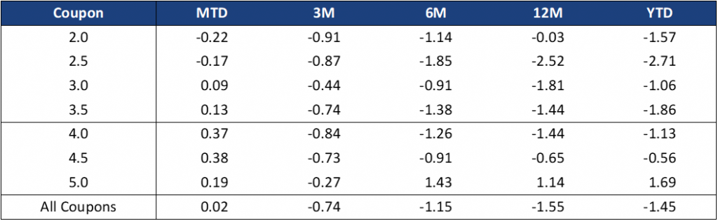 Excess returns reported by the Bloomberg Barclays MBS index. Source: Bloomberg, Amherst Pierpont Securities