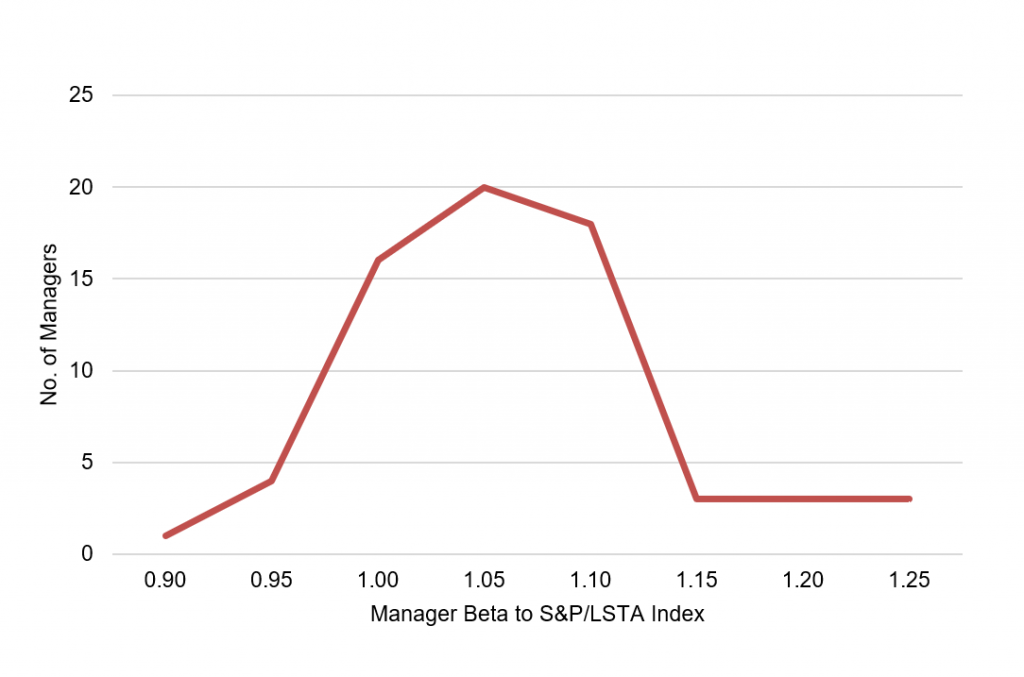 Investors in many other asset classes—equities, fixed income, alternative assets and beyond—routinely measure portfolio risk by comparing it to risk in a broad reference market. In the case of a portfolio of leveraged loans, the natural reference market is the broad market in leveraged loans. The S&P/LSTA Leveraged Loan Index is the natural candidate. And the single, summary measure of risk is the portfolio beta.