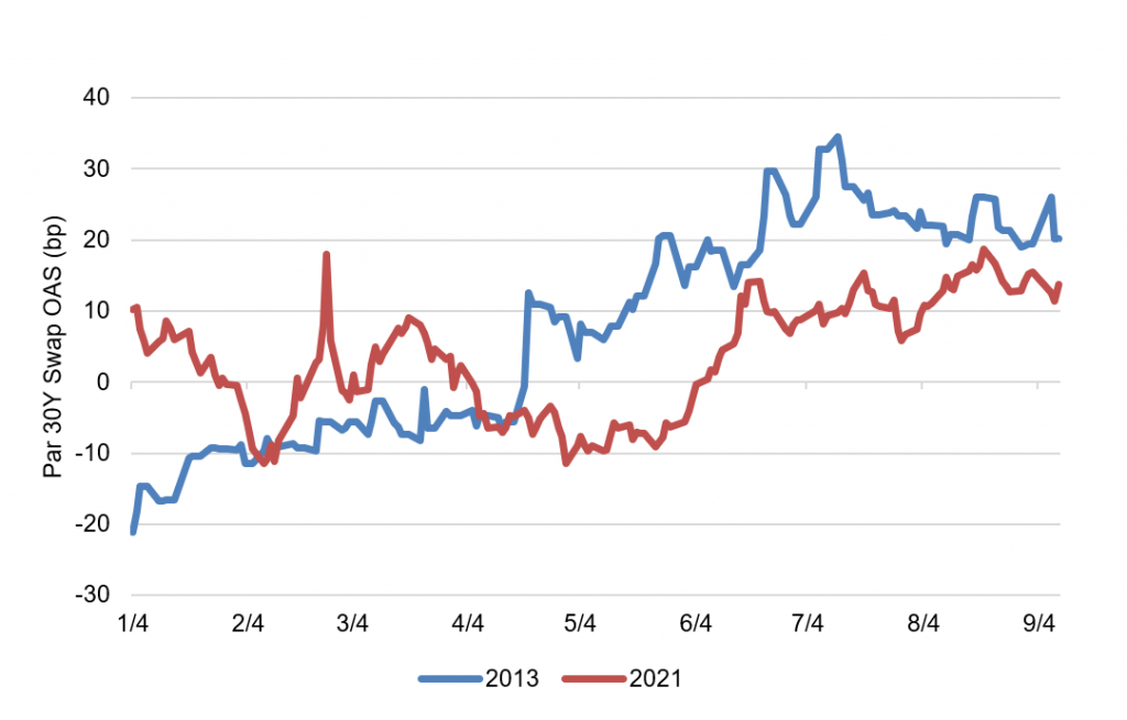 Exhibit 6: MBS has widened this year as taper talk has picked up