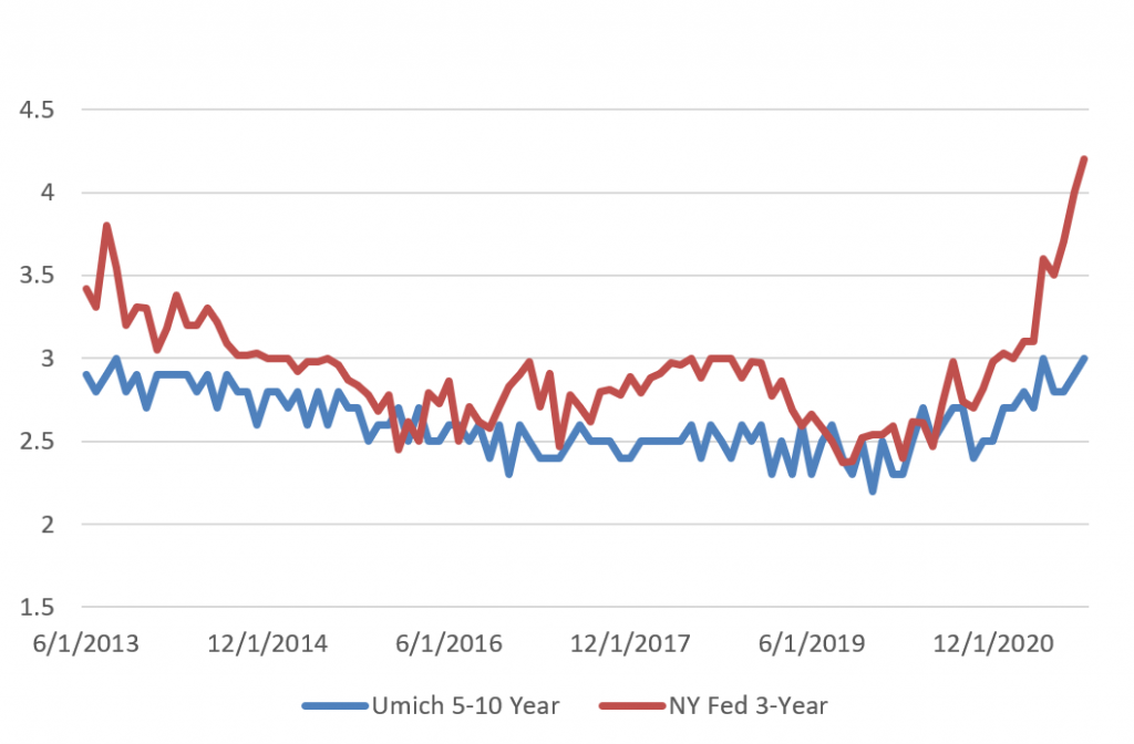 Source: University of Michigan, New York Fed.