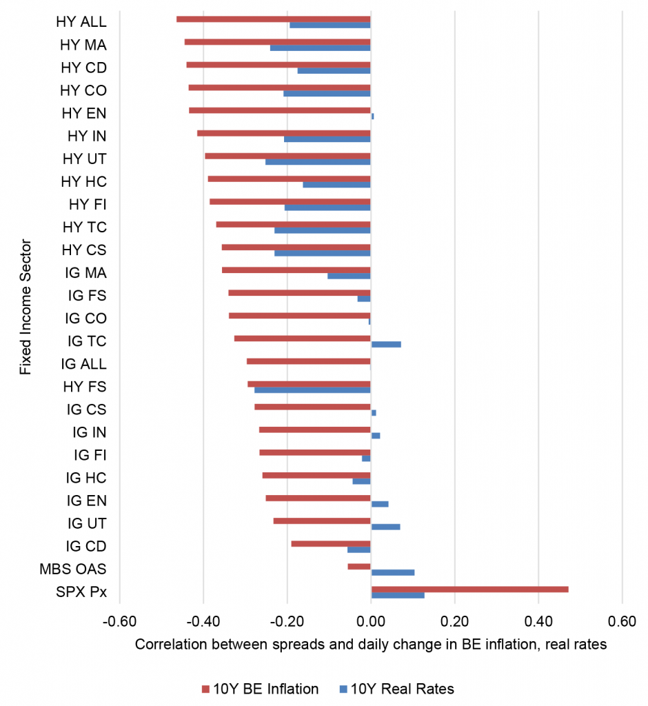 The correlation between real rates, inflation expectations and spreads
