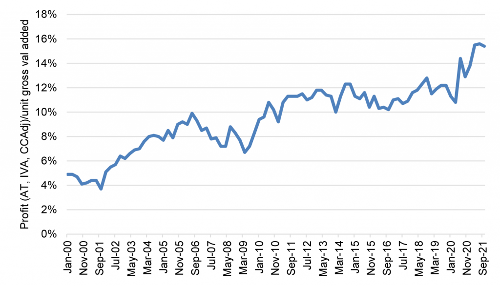 Exhibit 3: High corporate profit margins should cushion rising costs