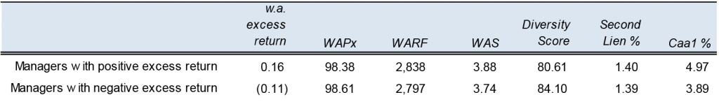 When compared the loan attributes from managers delivered positive and negative excess returns, it is clear managers who took risk were rewarded despite the softness seen in loan prices (Exhibit 3).